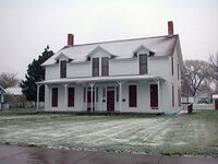U.S. troops first occupied a temporary camp known as Sidney Barracks in the summer of 1867 to protect Union Pacific Railroad construction crews. The post was officially established by special order of the Department of the Platte in November 1867. In 1869 it was relocated to a site southeast of Sidney, which had been established by the railroad. Sidney Barracks became Fort Sidney by executive order in May 1874. By 1875 the fort contained quarters for three companies, five officers' quarters, a hospital, guardhouse, bakery, laundry, stables, and other structures. It was abandoned in 1894, and most buildings were sold. The historic district, now located in a residential area of the town of Sidney, includes the commanding officer's quarters, built in 1871; a duplex officers' quarters built in 1884; and the 1872 powder magazine. The commanding officer's quarters and the officers' duplex have been restored as a museum by the Cheyenne County Historical Association.