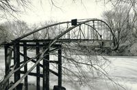 This bridge was originally constructed at Blue Springs and was known as the "Blue Springs Bridge." The date of construction and contractor are unknown. The bridge is first mentioned in Book 1 of the Gage County Supervisors' Records in October 1874, when a contract was awarded to paint the structure. The tubular sections resemble the 1867 and 1872 patents issued to William Rezner of the Ohio Bridge Company. The bridge was moved to Hoyt Street near Beatrice in 1890. This bowstring through truss bridge is significant as an outstanding representative of an unusual structural type (one of six bowstring arch bridges identified in Nebraska).