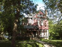 The Johnston-Muff House, constructed 1887-89, is a fine example of the Queen Anne style. While employing the usual variety in building materials and roof lines, this dwelling has a side tower rather than the typical corner tower found on most Queen Anne houses in the area. The residence was built for John R. Johnston, a businessman in Crete, and later purchased by Catherine Hier Muff in 1892.