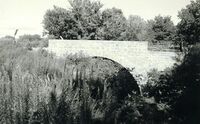 As indicated by a plate on the bridge itself, the Keim Stone Arch was built in 1916 by the Keim Cement Company. The Keim Cement Company was one of the primary bridge builders in the county, and appears to have been the only builder of stone bridges and culverts. The Keim Stone Arch Bridge, located near Tecumseh, is a rare, well-preserved example of early twentieth century stone arch bridge construction: the only surviving stone bridge built by this prominent local bridge builder.