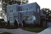Located in Grand Island, the house is a distinct and significant example of a Nebraska dwelling designed in the Moderne style of the 1930s, a style never widely popular in the state. The original house, a one-story Victorian dwelling constructed in 1893 for H. J. Bartenbach, was redesigned by local architect Gordon Shattuck in 1937-38 for Mrs. Bartenbach, giving the house its present appearance. Distinctive interior spaces include the open stairway and landing area, which features a newell post and balustrade of Modernistic design utilizing chromed rods and railings.