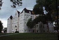 Nemaha County originated in 1855 with Brownville as the county seat. Located on the Missouri River, Brownville served as an early important point for westward immigration. However, the growing importance of railroad transportation and increasing county settlement inland threatened and eventually overturned Brownville's standing as county seat. The move came after the citizens of Calvert and Sheridan, both inland rail stops, put aside rivalries and merged to form the new town of Auburn in 1882. After a series of elections the county seat was formally moved to Auburn in 1885. Between 1885 and 1900 the county rented the first courthouse, a modest wood frame building. In 1889 county residents approved a bond issue for a new courthouse. Construction began that same year and in 1900 the Richardsonian Romanesque-style courthouse opened.