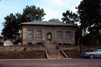 The Ponca Historic District comprises a ten-square-block area that includes the downtown commercial area and a portion of the residential environs. The district contains houses, churches, commercial buildings, and public and civic structures. The majority of structures in the district date from the late nineteenth and early twentieth centuries. Distinctive buildings include the Richardsonian Romanesque bank of Dixon County, the Carnegie Library, a Neo-Classical Revival style building, and the Ayres-Adams House, a brick Italianate dwelling. The town of Ponca, located in the Aowa Creek valley, is one of the oldest in the state, founded in the 1850s.