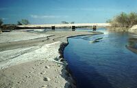 In late summer 1934 the Nebraska Bureau of Roads and Bridges completed the drawings for a multiple-span bridge over the South Platte River in Keith County. The Roscoe State Aid Bridge, located near the town of Roscoe, consists of seven steel I-beam stringer spans, supported by concrete piers in the river's channel and steel pile bents in the flood plain. Completed by the spring of 1935, it has carried traffic since in essentially unaltered condition. The Roscoe Bridge was among the final projects undertaken using state aid. Soon after its erection, the state aid bridge fund was phased out, ceasing entirely in 1936. This structure is noteworthy as a strategic crossing of the Platte River, as a well preserved example of long-span beam construction, and as one of the last state aid bridges built in Nebraska.