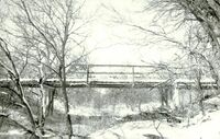 A builder's plate mounted on the west web notes that the bridge was built by the Milwaukee Bridge Company in 1916. Unfortunately, the Harlan County Commissioners' records for 1916 do not refer to this bridge or the Milwaukee Bridge Company, suggesting that it was purchased from outside the county and later moved to its present location near Stamford. Harlan County's wide variety of bridge types also seems to suggest that this and several other bridges were purchased and moved from other locations. With its upper chords, end posts, and virtually all of the other web members comprising steel angles, the truss is atypically configured among Nebraska's secondary road spans. Numerous such "2-angle" trusses remain in use in Missouri, and a few are in place in Iowa, but in Nebraska this Pratt subtype is extremely rare. The Sappa Creek Bridge is thus technologically noteworthy as a singular example in Nebraska of an unusual structural configuration.