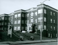 Designed by Omaha architect Richard Everette in 1916, Selma Terrace is a fine local example of the Sunlight and Air Apartment, a subtype of the Garden Apartment. Character defining features include an L-shaped plan, a slender width allowing each unit windows on at least two elevations and individual sun porches. The Garden Apartment movement developed in the United States as tenement laws and housing reform combined to transform middle class apartments from dark, cramped quarters, to bright sunlit spaces with sufficient ventilation.