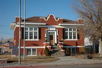 In 1903 a library committee was created in Sidney for the purpose of establishing a public reading room at the local Y.M.C.A. Books for the reading room were purchased with private funds. This progressive activity resulted in the founding of Sidney's first public library. In 1913 the Women's Club applied for a grant from the Carnegie Foundation to construct a public library building in Sidney. The land for the library was donated by a prominent Sidney businessman, and the Sidney Village Board passed a resolution that provided tax money for the perpetual care of the new library. Completed in 1914, the library is a one-story brick building with a raised basement constructed in the Jacobethan Revival style.