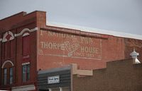 Located in David City, the three-story brick commercial building was constructed in 1889 by William Thorpe as a recital hall for his daughter, Estelle. Estelle's favorite color, blue, was used in the interior of the second floor opera house, which contains box seats, a "U" shaped balcony, and a multi-leveled gallery. Groups such as the Boston Comic Opera Company and the Tennessean Jubilee Singers performed at Thorpe's Opera House.