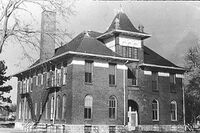 The bond issue to build the Valentine Public School was approved in February 1897. It was designed by Omaha architect Charles F. Beindorff, and construction was completed in 1898. The two-story brick structure was built for primary and secondary students of Cherry County School District 1. The building incorporates Queen Anne and Romanesque Revival design elements. The school is owned by the Centennial Hall Corporation, a non-profit organization which uses it for community functions.