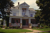 Constructed in 1909, the Faling House is located in Cambridge. It is representative of the eclectic Neo-Classical style popular during the early part of the twentieth century. The house is architecturally significant and contributes to a time when the West was becoming more cultured, and manifesting its growth through a more elaborate physical building stock. The two-story house retains a high degree of historical integrity.
