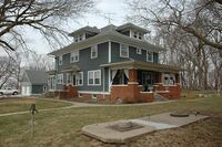 The Guhl Farmhouse, constructed in 1922, is significant locally as an exquisite example of the Prairie style American Foursquare house. It exhibits all of the most common features for identifying a house of this style: a low pitched, hipped roof with wide overhanging eaves, a one-story, full width porch, and fenestration featuring multi-light upper sashes. The interior of the house includes features that illustrate the style's emphasis on openness and efficiency including a multi-purpose living room, laundry chute, built-in desk and bookcase, and an elaborate buffet.