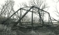In Nebraska, the pinned through truss was the bridge of choice for short- and medium-span applications in the late nineteenth and early twentieth centuries. Most of the structures erected during this period were based on standard plans developed either by the state engineer's office or by the individual bridge companies. As a result, hundreds of Pratts were built across the state, all essentially identical, and today the Pratt truss constitutes the most populous group of through trusses. However, the Wolf Creek Bridge is not like any other truss in Nebraska. Erected in 1889 by the King Iron Bridge Company, it displays features such as fishtail floor beams, peculiar upper-chord connections and "sideways" end posts and upper chords that were soon thereafter rendered anachronistic. Moved to this location near Dunbar, the truss has more recently been closed and its deck removed.