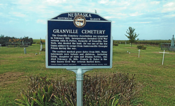 The Granville Cemetery Association was organized in February 1881. Incorporators included Civil War veteran Adin H. Potter, formerly of Granville, New York, who deeded the land. He was one of the few Union soldiers to escape from Andersonville (Georgia) Prison during the war.