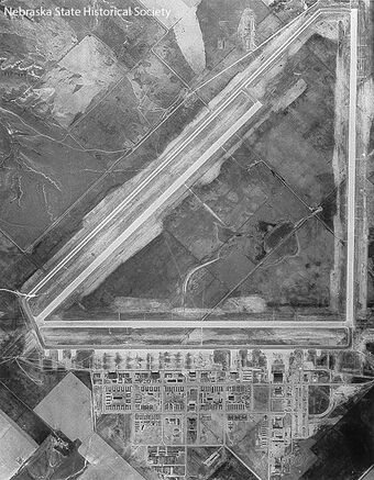 McCook Army Air Base, activated April 1, 1943, was one of eleven Army Air Force training bases in Nebraska during World War II. The base was under the command of 2nd Air Force Headquarters, Colorado Springs, Colorado, and provided final training of heavy bomber crews for the B-17 Flying Fortress, B-24 Liberator, and B-29 Super Fortress. Some 15,000 servicemen and 500 civilians were stationed here. Among the bomb groups trained at McCook were elements of the 8th, 15th, and 20th Air Forces. These bomb groups saw combat in the European, Mediterranean, and Pacific Theaters. The 2,100-acre base included three 150 by 7,500-foot concrete runways, five hangars, and barracks for 5,000 men. It operated with three divisions: Base Services (hospital, chapel, theater, band, gymnasium, fire station, post office, photo lab, library, and military police); Maintenance and Supply (air service groups, post engineers, machine shop, warehouses); and Training (celestial navigation, gunnery and bombing, communications, radar, and aircraft maintenance). The base closed December 31, 1945.