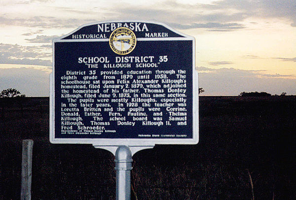 Nebraska Historical Marker: School District 35, The Killough School