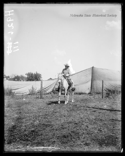 "In the afternoon in company with Mr. [James] McNulty and Hon. W. F. Cody we visited the germ of the great show which is to spring into existence the latter part of this month at Omaha and which will sweep all before it when once fairly started. . . . On a piece of level meadow land was pitched the tents for the men while the buffalo and a large number of horses were grazing in an adjoining pasture. A number of elk were expected in a day or two and men were engaged purchasing the most famous bucking horses that Nebraska afforded. 'Buck' Taylor, who is to be one of the star riders of the combination, gave an exhibition on a wall-eyed calico horse that would astonish the effeminate easterners, and if he lives long enough the performance will be repeated for their benefit during the summer. Another wing of the show is getting under way at Omaha, where the Indians will join it, and about the 17th of the present month the western Nebraska wonder will give its opening exhibition at the state's metropolis."