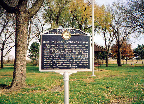 Nebraska Historical Marker: Talmage, Nebraska, 1982