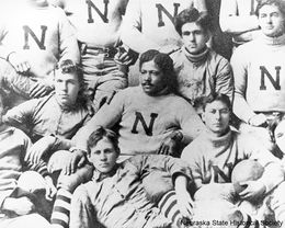 In 1892, the team beat Illinois with the help of fullback and tackle George A. Flippin, an African-American. That same year, the University of Missouri forfeited its game against Nebraska because they would not play against a black man. Flippin’s teammates voted to keep Flippin on the team regardless. Flippin was a popular leader on campus and was elected president of the prestigious Palladian literary society. After graduating from Nebraska, he got his MD degree at the University of Illinois Medical School in Chicago and later joined his father in Stromsburg to establish the first hospital in the region.