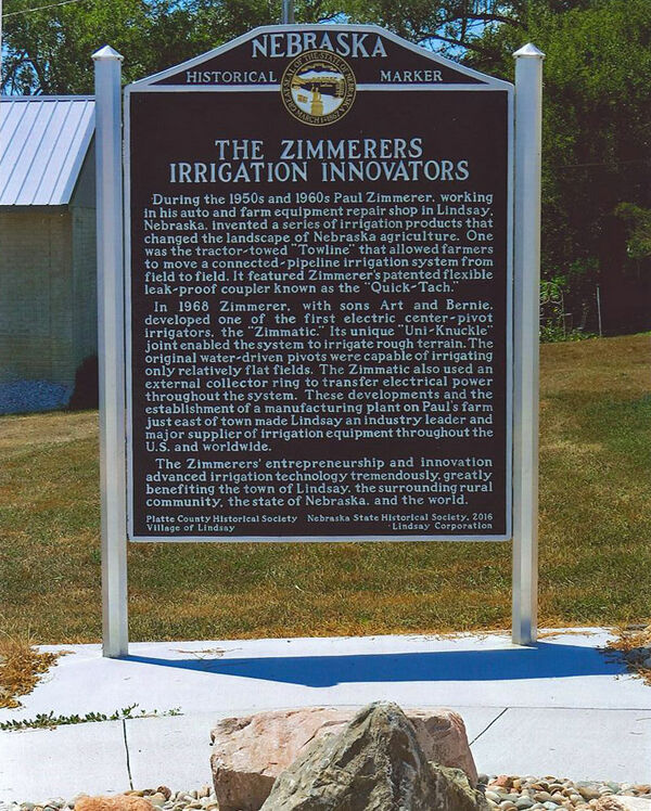 The Zimmerers’ entrepreneurship and innovation advanced irrigation technology tremendously, greatly benefiting the town of Lindsay, the surrounding rural community, the state of Nebraska, and the world.