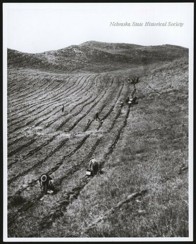 In 1885 surveyors designated a route through the Sand Hills for a Burlington Railroad branch line. The rails reached this point on the Blaine-Thomas county line in 1887, and a town was laid out. It was named Halsey after Halsey E. Yates, the son of Burlington official Charles E. Yates. A depot was constructed, followed by a post office and school/church, both built of sod.